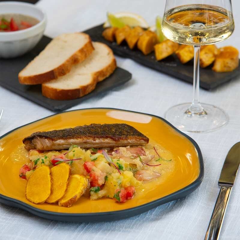 O menu elaborado pelo chef Marco Toppel também propõe uma experiência gastronômica de alto nível, harmonizada com rótulos de vinhos selecionados.